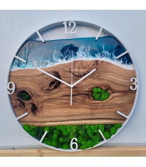 Holzwanduhr mit Moos