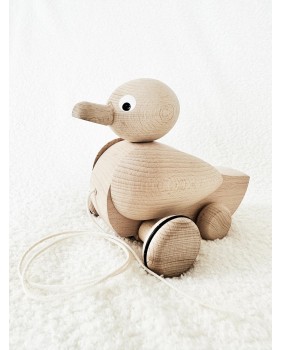 Wir bieten eine Holzente mit Ziehschnur, die jedes Kind begeistern wird! Dieses handgefertigte Spielzeug aus natürlichem Holz ist sicher und umweltfreundlich. Beim Ziehen bewegt die Ente Kopf und Flügel, was das Spielen noch spannender macht.