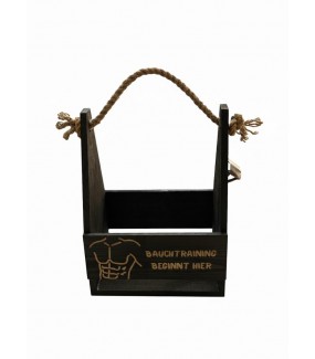 Stylische Bierkiste aus massivem Kiefernholz mit Gravur „Bauchtraining beginnt hier“. Handgefertigt, robust und praktisch.