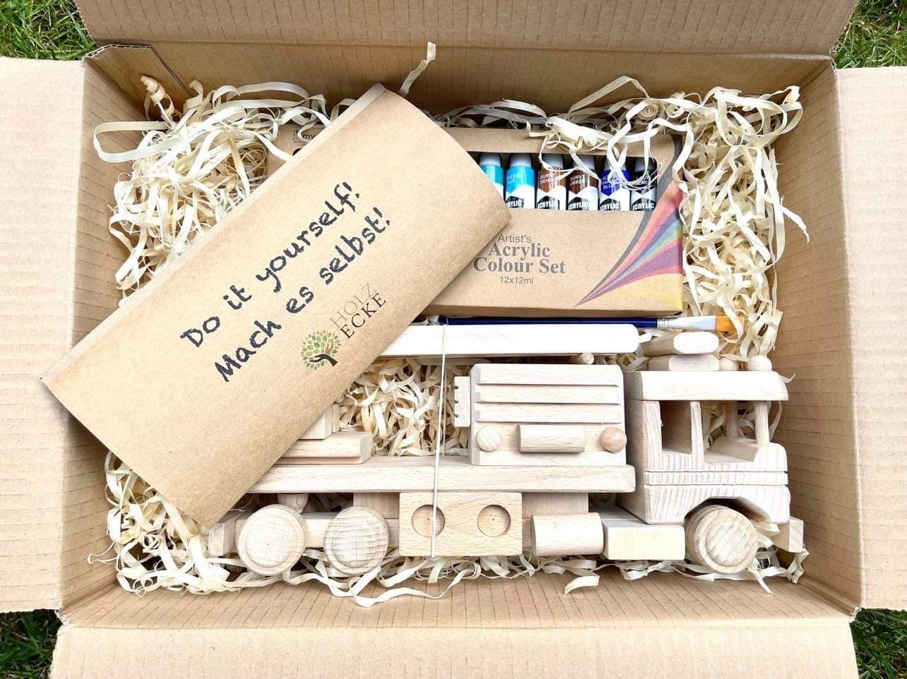 Kinder können das Spielzeug auch bemalen. Ein Farbset für Kinder ist in unserem Shop erhältlich.