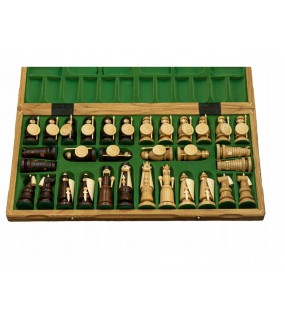 Das Schachspiel ist aus drei Holzarten hergestellt - der Hauptteil des Schachspiels ist aus EICHE und die anderen Teile sind aus JAWOR und KIRSCH gefertigt. Die Schachfiguren sind mit Metall beschwert.