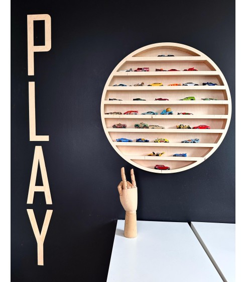 Bringen Sie Ordnung und Stil ins Kinderzimmer mit unserem runden Regal für Spielzeugautos!