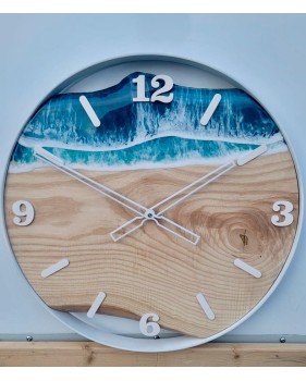 Wunderschöne, einzigartige Wanduhr, handgefertigt aus Kiefernholz mit Epoxidharz.
