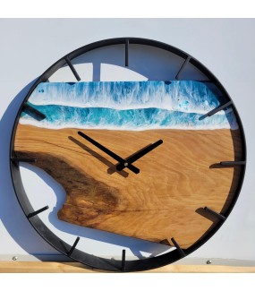 L'horloge en bois et résine est le plus souvent fabriquée à partir de planches de noyer et de chêne. L'insert en résine, quant à lui, est généralement de couleur bleue. La gamme de nuances apaisantes de bleu évoque des souvenirs ... une vue du paysage. Cependant, une horloge en résine peut être fabriquée à partir de n'importe quel type de bois, ainsi que de résine de n'importe quelle couleur.