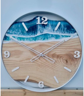 L'orologio in legno e resina è spesso realizzato con assi di noce e quercia. L'inserto in resina, invece, è generalmente di colore blu. La gamma di rilassanti tonalità di blu evoca ricordi... una vista sul paesaggio. Tuttavia, un orologio in resina può essere realizzato con qualsiasi tipo di legno e di resina di qualsiasi colore.