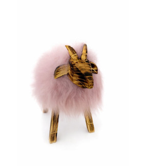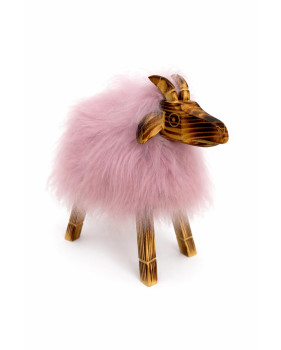 copy of Holz-Schaf mit echtem Fell – Sitzgelegenheit und Dekoration in einem